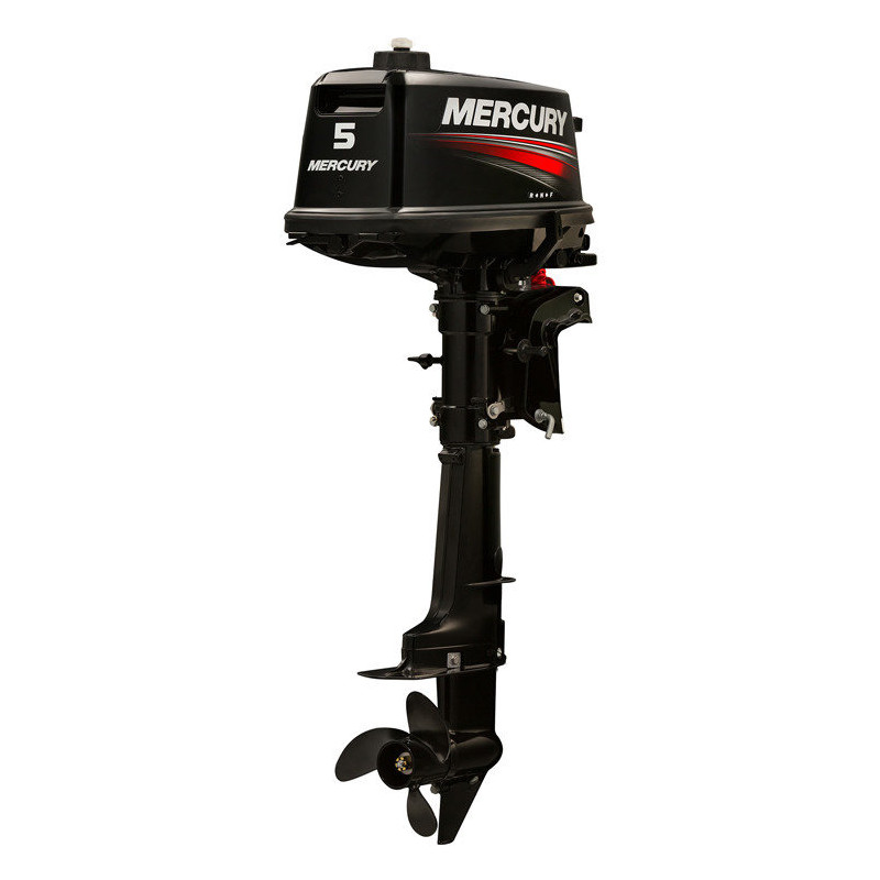 Лодочный мотор Mercury 5 M + выносной бак со шлангом — это 2-х тактный мотор (1 цилиндр) с мощностью 5 л.с. и водяным охлаждением. Данный мотор достаточно мощный, чтобы выводить лодку в глиссирующий режим и достаточно легкий, чтобы не испытывать проблем с его транспортировкой (вес мотора - 20 кг.). Он не требует наличия прав на управление маломерным судном. Является самым популярным мотором в данном классе!