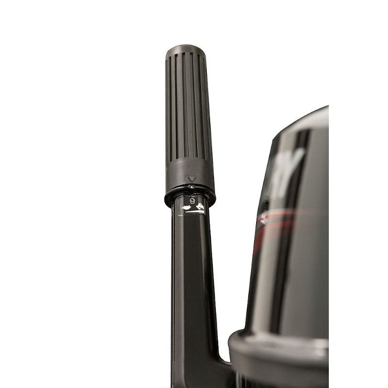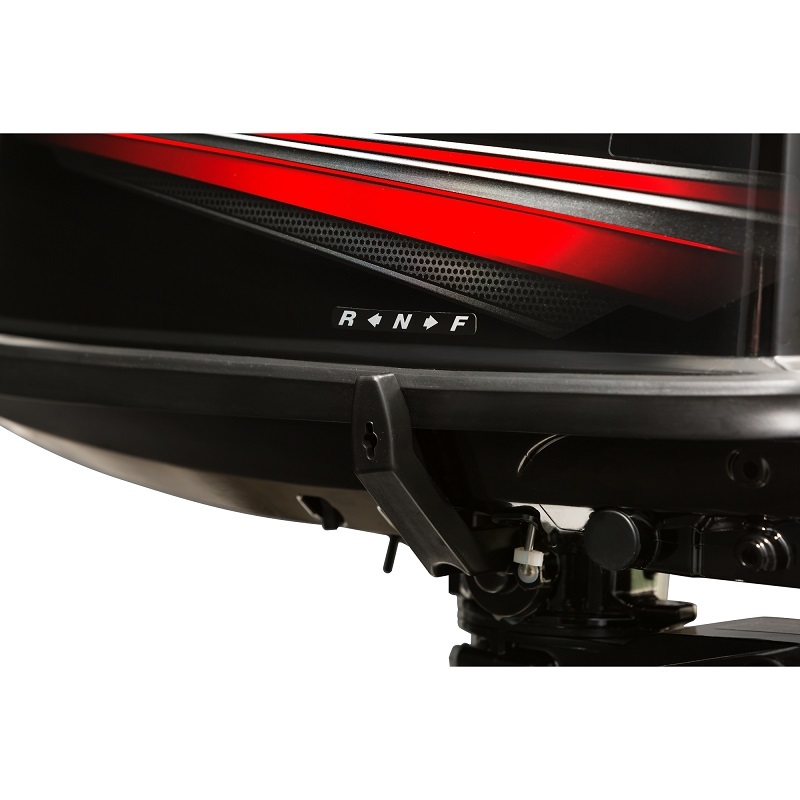 Румпель у данного мотора классический, с плавной регулировкой оборотов и рычагом переключения передач, расположенным на корпусе мотора. Выхлоп через ступицу винта.