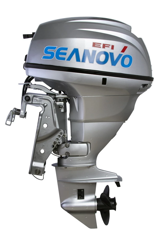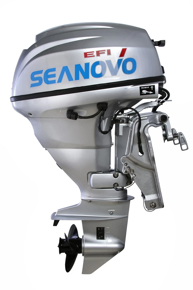 Четырёхтактный лодочный мотор Seanovo SNEF 30 FEL-T мощностью 30 л.с. с электронным впрыском топлива EFI, с комбинированным стартером, дистанционным управлением и электрогидроподъемом. Длинная нога L=512 мм.