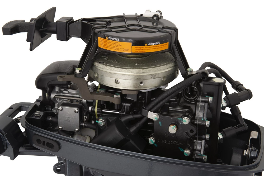 Для движения по мелководью предусмотрен специальный режим. Винт с тремя лопастями выполнен из алюминия. Мотор рекомендуется использовать на лодках 3 - 3.5 метров с высотой транца 381 мм.
