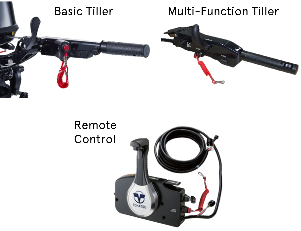 Варианты управления Уникальная переработанная рукоятка румпеля для MFS30DE включает: стоп-переключатель; четырехступенчатую систему управления скоростью с 750 об/мин до 1050 об/мин; переключатель вперед - нейтраль - назад; регулировку трения дросселя; кнопку электрического пуска. Многофункциональный румпель Tohatsu также доступен для нескольких моделей как опция. Как стандартный, так и многофункциональные румпель имеют функцию управления скоростью. Доступны модели дистанционного управления.