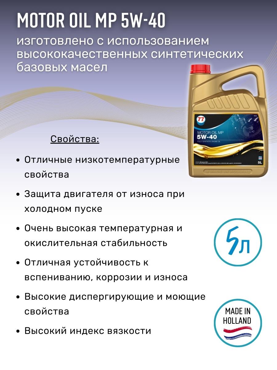 Синтетическое моторное масло Motor Oil MP 5W-40 1л (77 Lubricants)