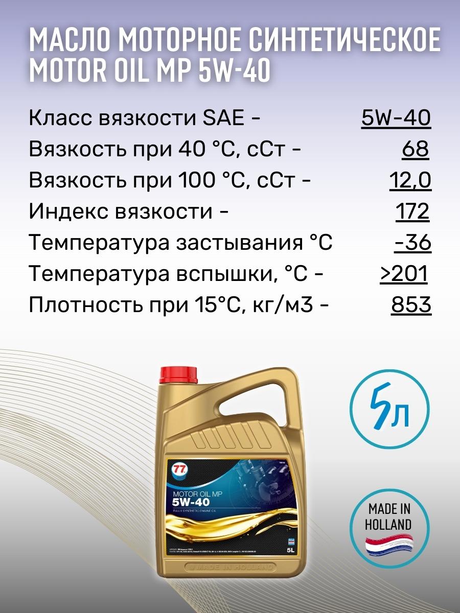 Масло моторное синтетическое Motor Oil MP 5W-40 5л (77 Lubricants)