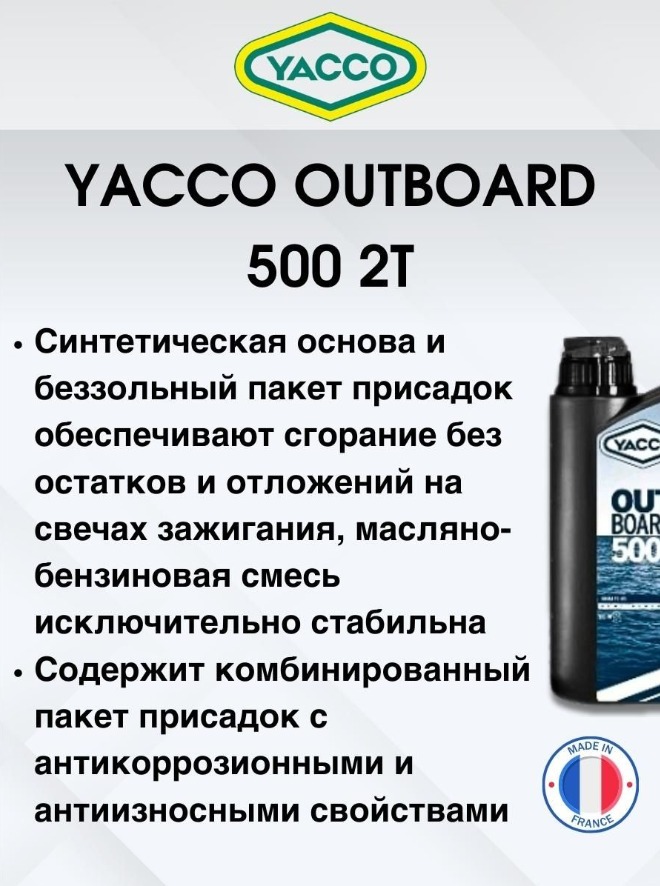 Масло моторное Yacco 2T outboard 500 NMMA TC-W3 полусинткетика 1л