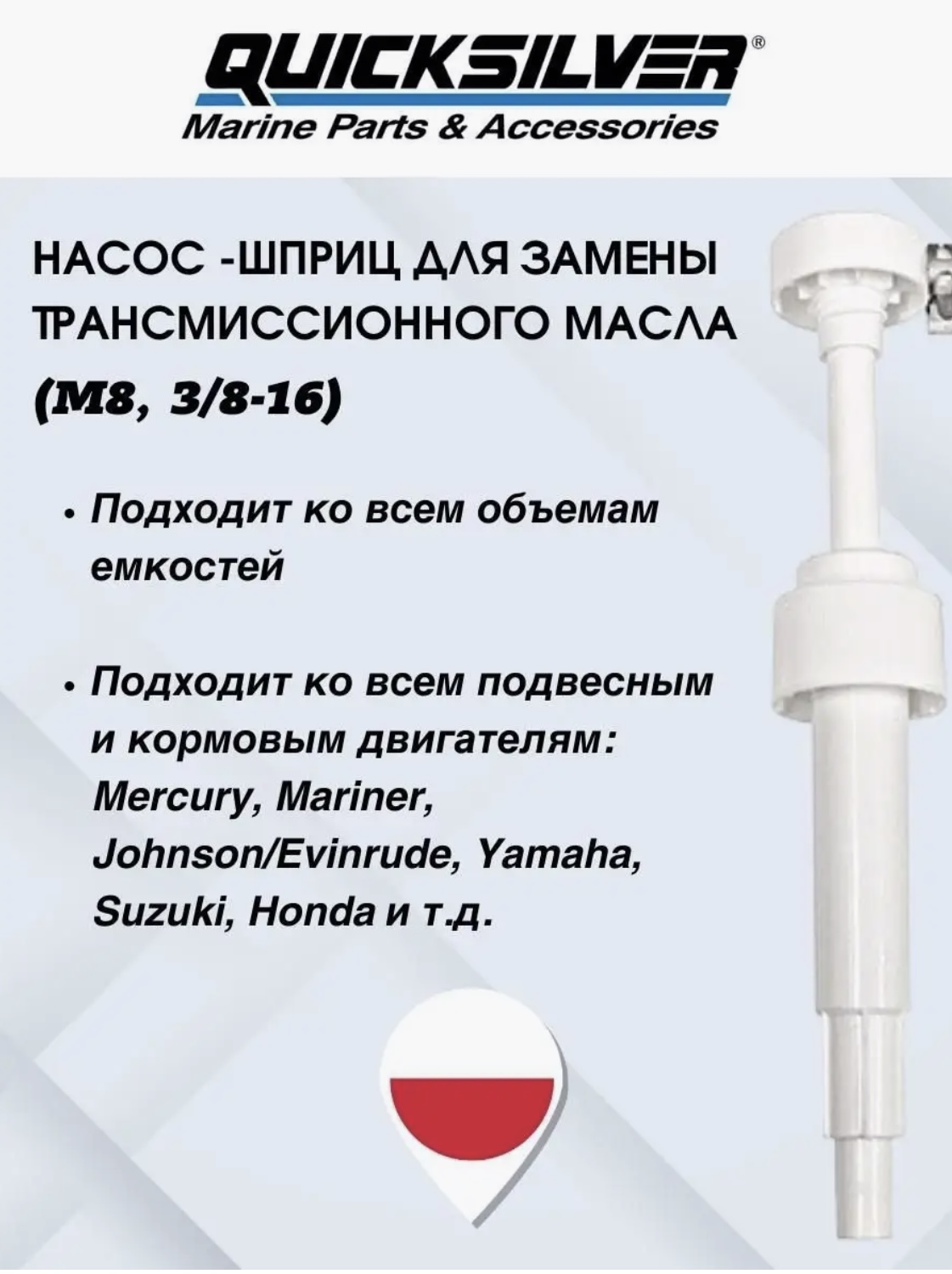 Подходит ко всем подвесным и кормовым двигателям со сливной пробкой 3/8-16”.