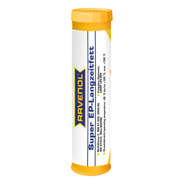 RAVENOL Super EP-Langzeitfett — высококачественная пластичная смазка с противозадирными (EP) присадками, предназначенная для длительной эксплуатации в условиях повышенных нагрузок и вибраций.