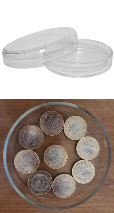 Комплект: две чашки Петри из кислотостойкого стекла.