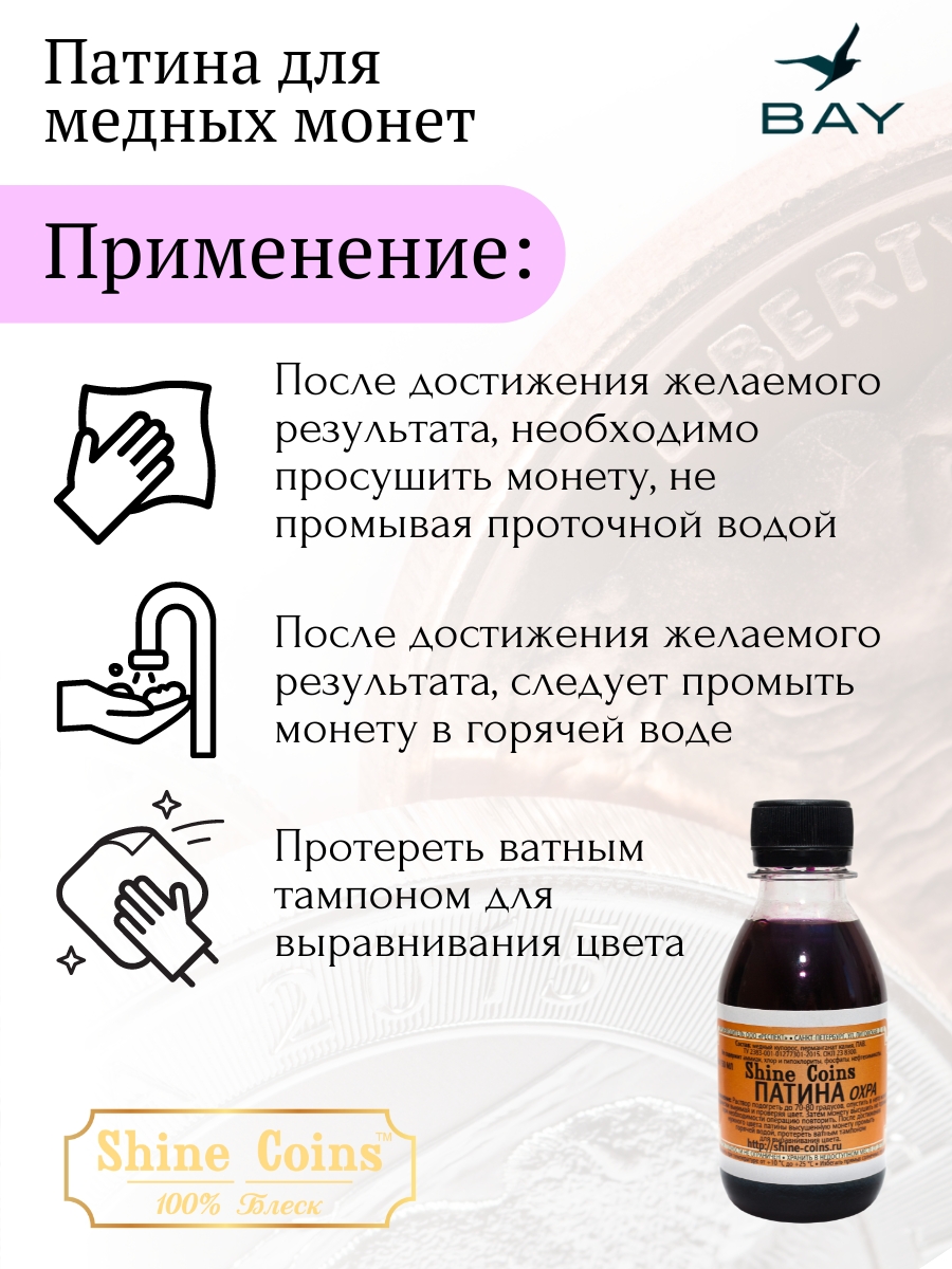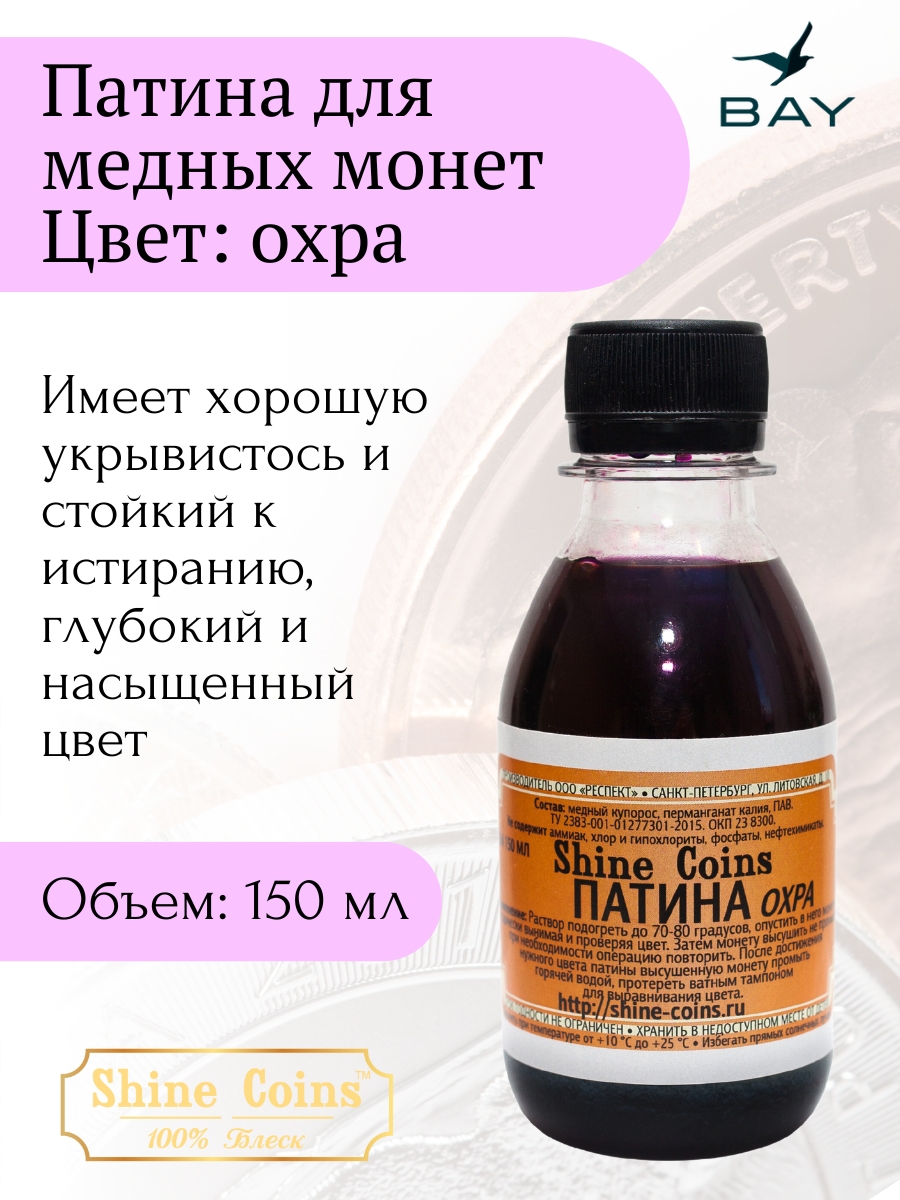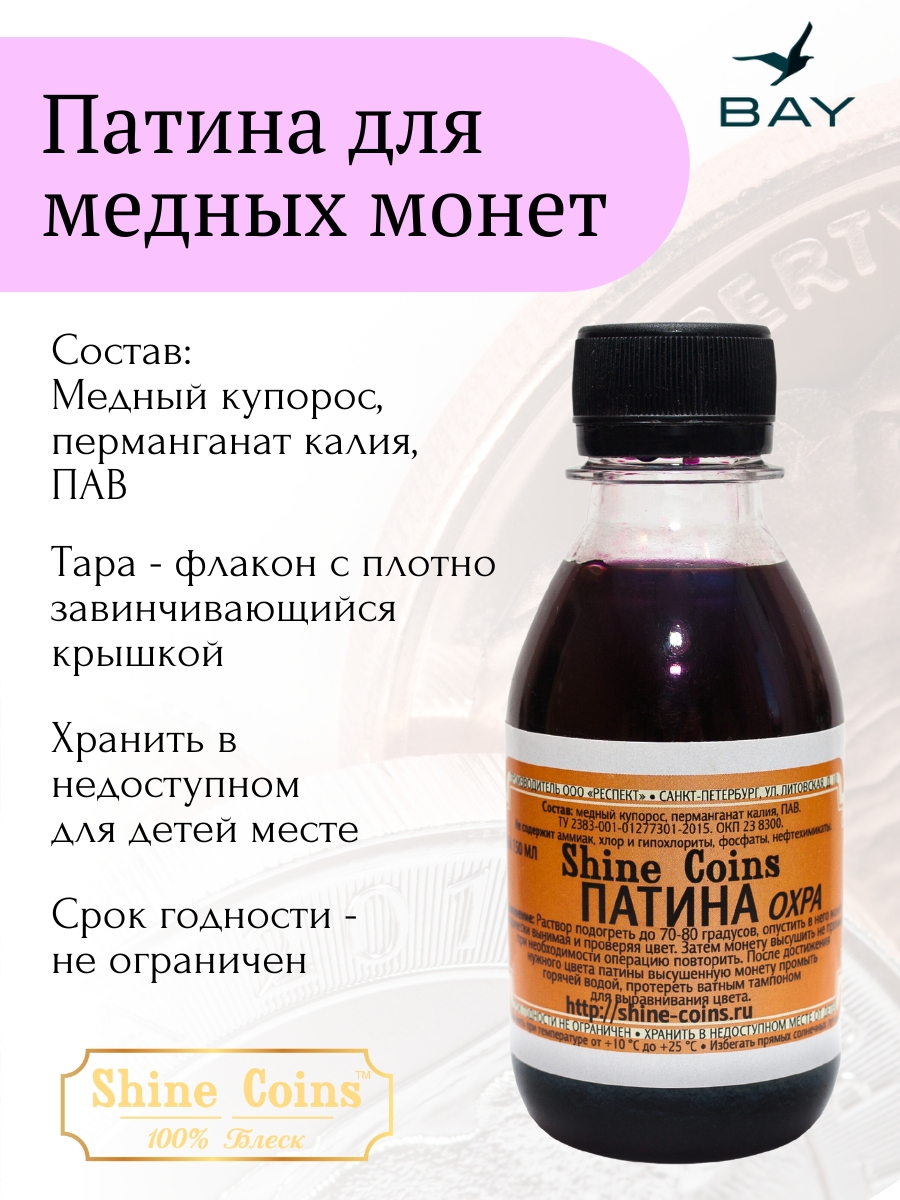 Специализированный состав для создания декоративной патины охраного оттенка на медных монетах. Основные характеристики: