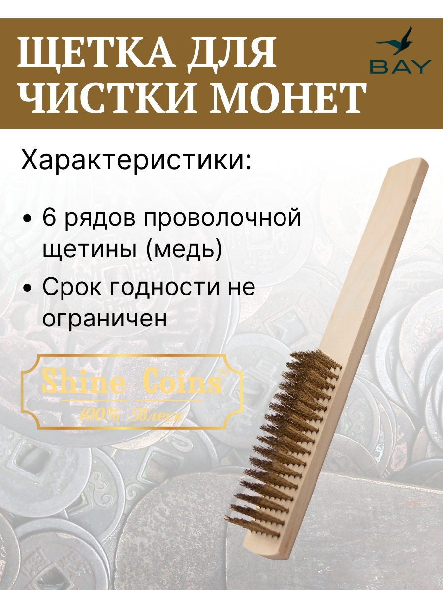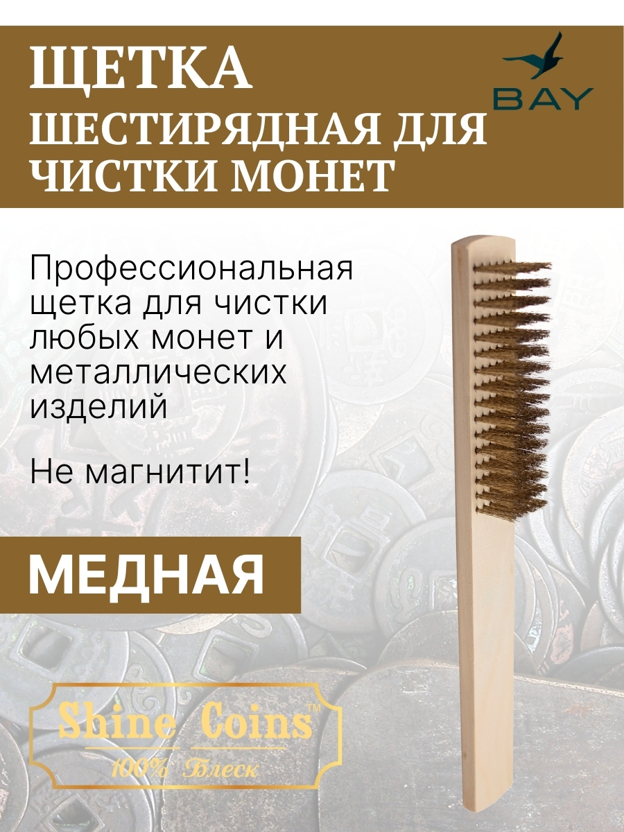 Медная шестирядная щетка для профессиональной чистки монет (без магнитных свойств)