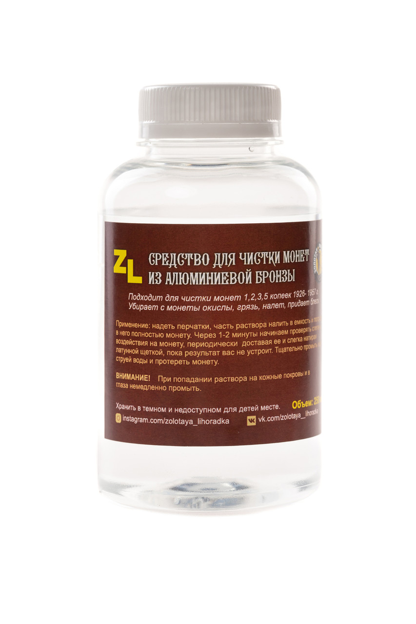Средство для чистки монет из алюминиевой бронзы. Подходит для чистки 1,2,3,5 копеек 1926-1957 г. Убирает с монеты окислы, грязь, налет и придает блеск.