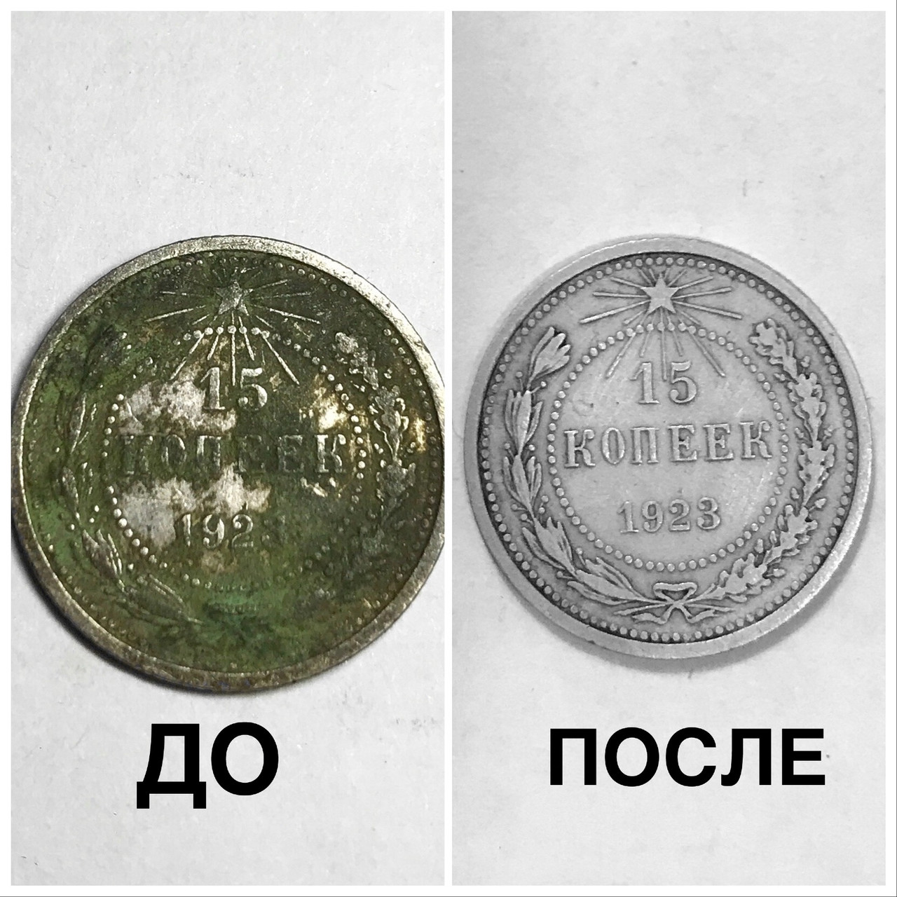 Убирает окислы, грязь, черный налет не повреждая монету.