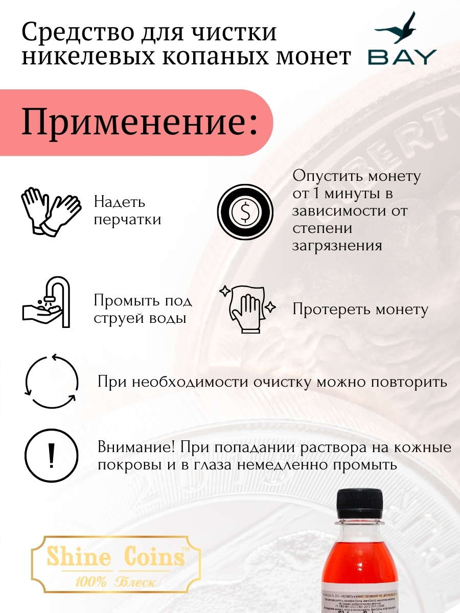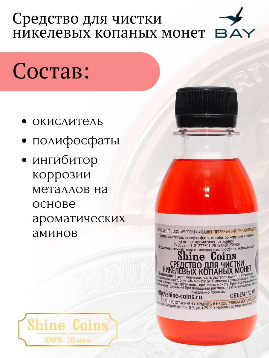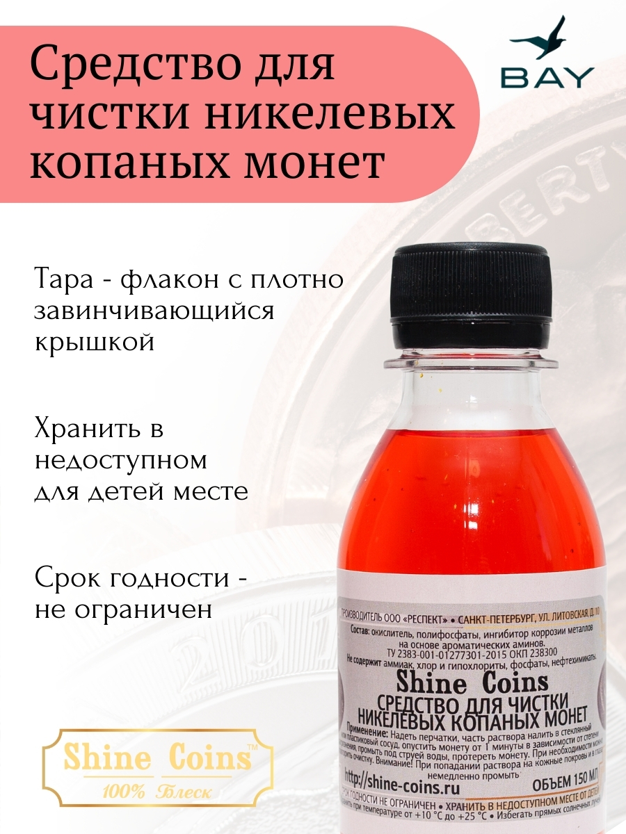 Продукт разработан специально для бережной очистки никелевых монет, обеспечивая эффективное удаление сложных загрязнений при минимальном воздействии на металл.