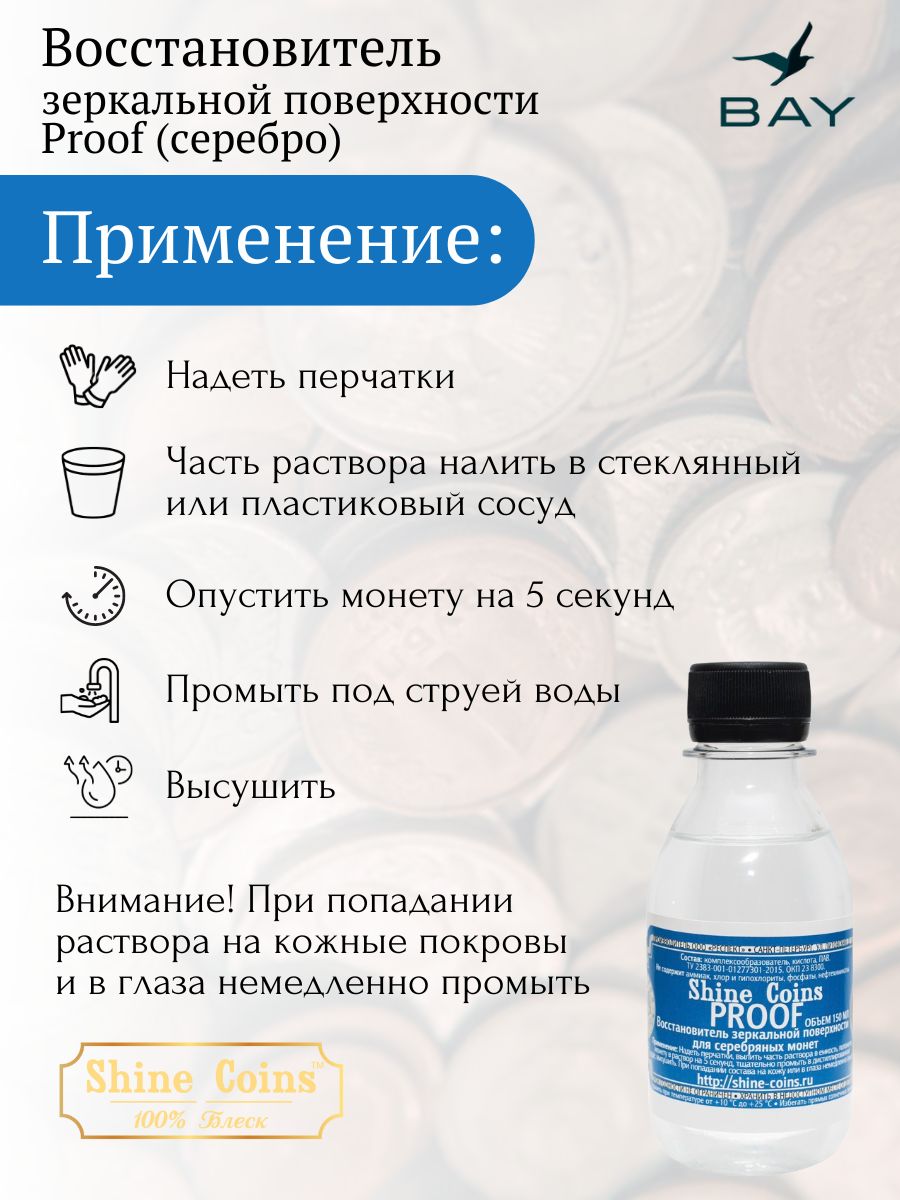 Предназначен исключительно для монет качества Proof. Не заменяет обычные очистители серебра.