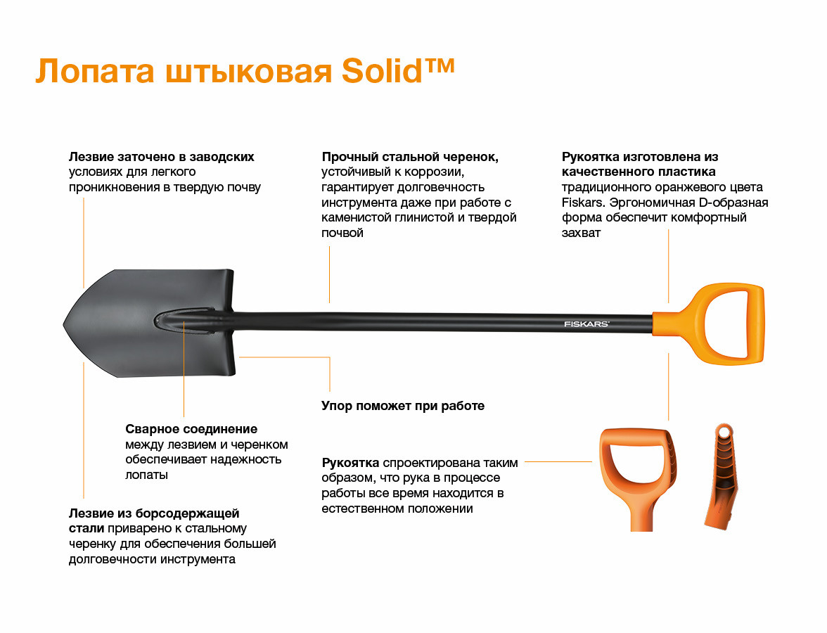 Лопата штыковая Fiskars Solid - 1 шт.