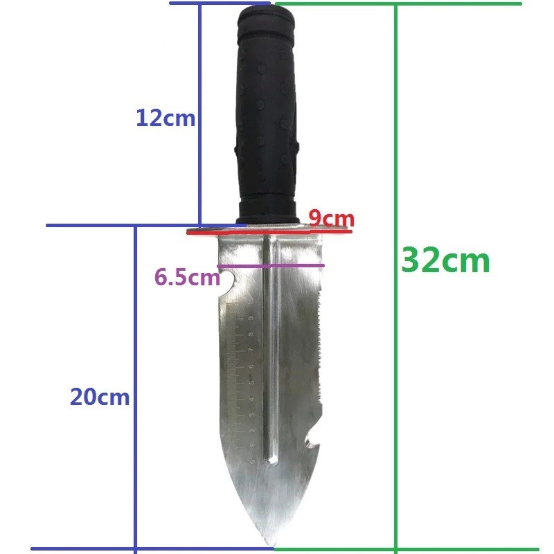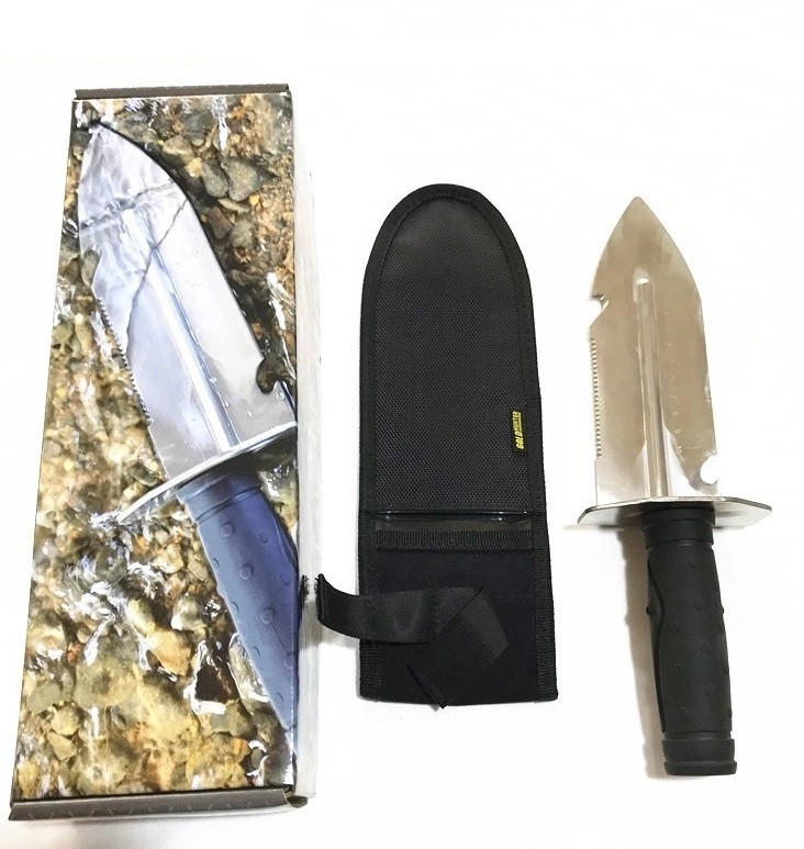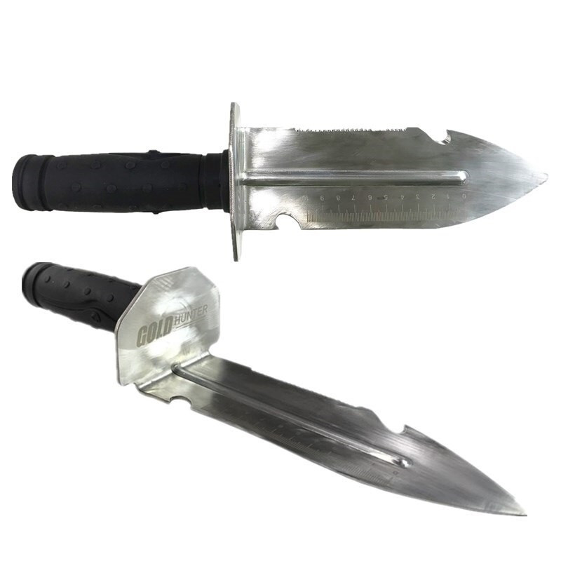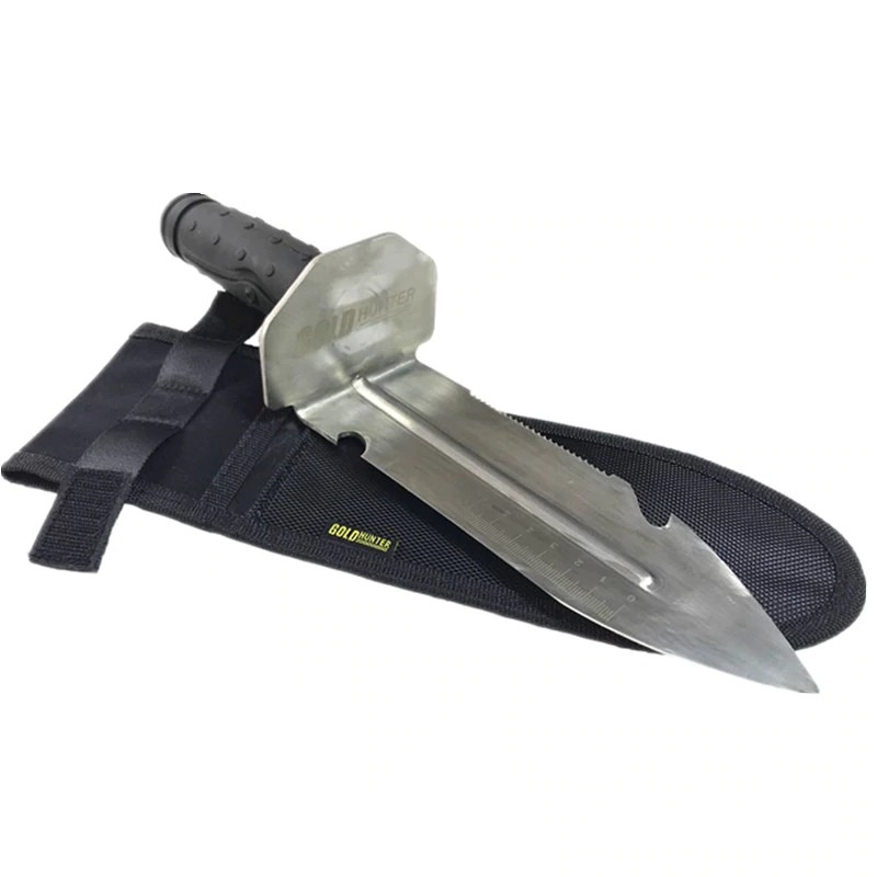 Лопатка Gold Hunter комплектуется с прочным чехлом с застежкой, чтобы вы могли всегда иметь при себе инструмент в любое время, цепляя чехол на ремень. Многофункциональная зубчатая кромка, полезна для различных задач, включая открывание крышки, копание, просеивание песка, пересадка почвы, посадки, резки корней, и многое другое. Универсальный совок-лопатка Gold Hunter, также подходит для различных садовых работ