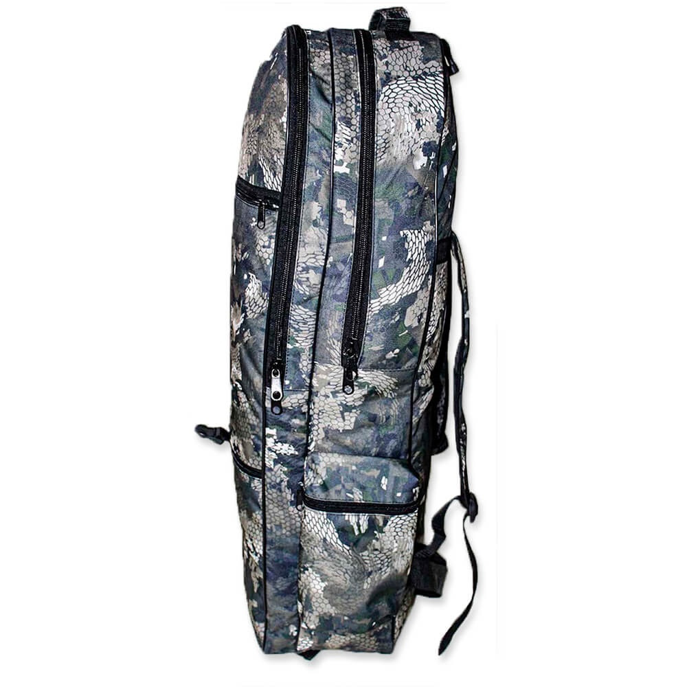 - оборудован двумя отдельными отсеками, в один из которых помещается любая лопата длиной до 84 см, а в другой - металлоискатель в разобранном виде, дополнительные катушки, иные вещи поисковика;