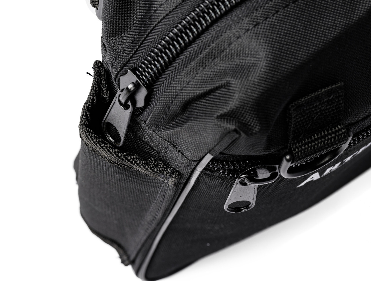 Сумка для находок поясная с креплением на ногу имеет два отделения: одно - для мелких находок , второе (более объемное) - для мусор, так же имеет кобуру для ношение пинпоинтера