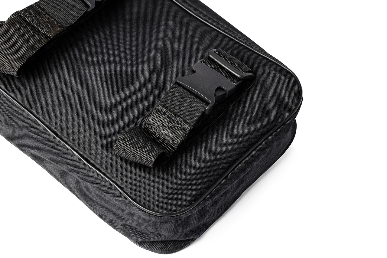 Сумка крепится на поясе и ноге с помощью двух ремней. Благодаря такому креплению сумка надежно закреплена не скользит и не переворачивается.