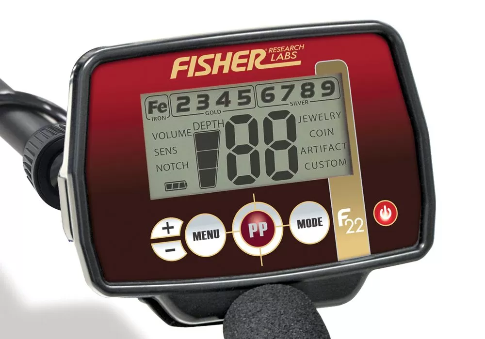 Металлоискатель FISHER F22, оснащенный большой катушкой 11” Double-D открывает потрясающие возможности для новичка в поиске, но при этом сохраняет Ваш семейный бюджет!