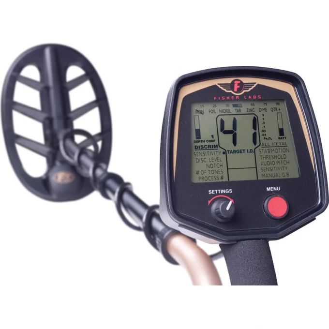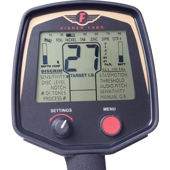 На ЖК-дисплее отображается «Target ID» числовое обозначение от 0 до 99, которое поможет вам с максимальной точностью определить тип металлической цели. Кроме того на экране отображается показатель погрешности, чувствительность, уровень батареи, а в режиме пинпоинтера ещё и глубина залегания. Микропроцессор сохраняет все предыдущие настройки, поэтому их не придется заново вводить при каждом запуске искателя. У Fisher F75 довольно низкое энергопотребление. На 4х алкалиновых батареях он проработает около 30 часов.