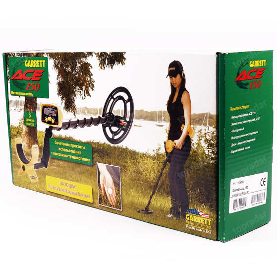 Металлоискатель Garrett ACE 150 в комплекте с Pro-Pointer AT и сумкой для находок. Металлоискатель Garrett Ace 150 — самый популярный прибор среди начинающих кладоискателей для поиска черного и цветного металла. Обладает прочной конструкцией, простым управлением и понятными настройками. Способен очень точно идентифицировать и исключать металлы. Хорошо подходит для поиска старинных и современных монет, различных украшений из благородных металлов и кладов. Благодаря высокой чувствительности на большие массы металла, прибор рекомендован для сбора металлолома. Гаррет Асе 150 имеет оптимальное соотношение по цене и качеству, и в течении долгих лет пользуется повышенным спросом. Поставляется в комплекте вместе с универсальным пинпоинтером Pro-Pointer AT и сумкой для находок Garrett. Технические характеристики: Универсальная частота 6,5 кГц; 3 оптимальных поисковых программы (All Metal, Jewelry, Coins); Наличие функции дискриминации (5 сегментов); Точная и легкая катушка в форме эллипсоида; Русифицированное меню управления; Комплектация: Блок управления Garrett Асе; Подлокотник; Верхняя штанга с ручкой; Средняя крепёжная штанга; Нижняя крепёжная штанга; Поисковая катушка (6.5 х 9″); Болт, гайка, резиновые уплотнители; Cумкa для находок Garrett; Пинпоинтер Pro-Pointer AT; Гарантийный талон; Инструкция пользователя на русском языке; Фирменная коробка.