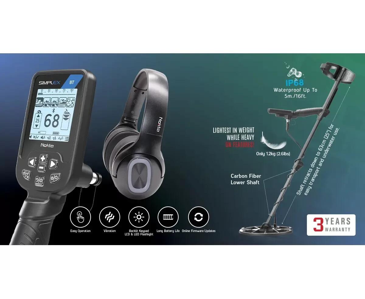 Nokta Simplex BT демонстрирует высокую эффективность при поиске монет, ювелирных изделий и артефактов. Удобное управление и автоматические настройки делают его оптимальным выбором для начинающих пользователей, while расширенный функционал удовлетворяет потребности опытных операторов. Прочная конструкция и трехлетняя гарантия обеспечивают долговечность и надежность эксплуатации в различных условиях.