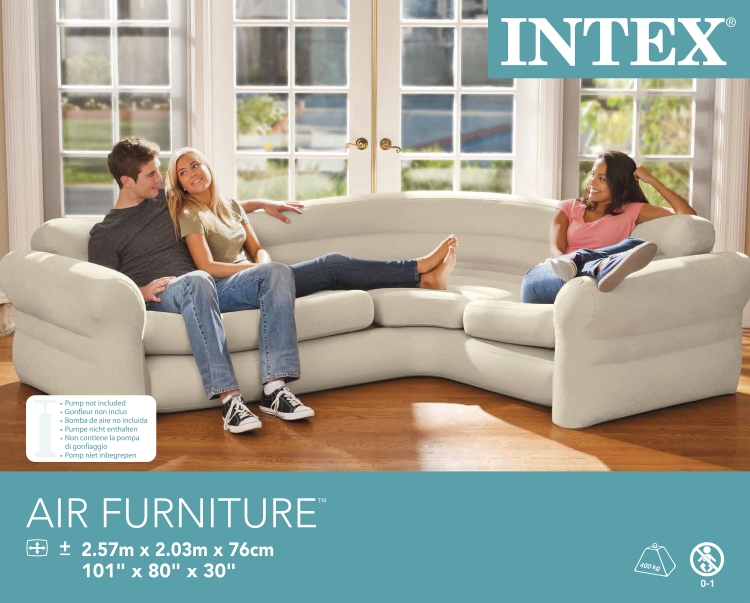 Надувной угловой диван intex 68575. Размеры 257х203х76 см. идеальный выбор для любой гостиной.