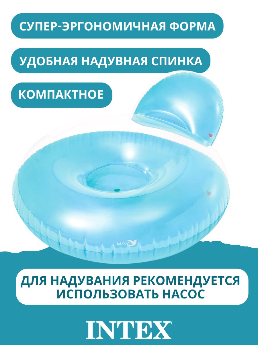 Надувное плавательное кресло "Pillow-Back Lounges" Intex 58889 изготовлено из современного и высококачественного материала - винила толщиной 0,25 мм. Это необычное кресло можно использовать на пляже, у бассейна, на даче или даже дома за просмотром ТВ.