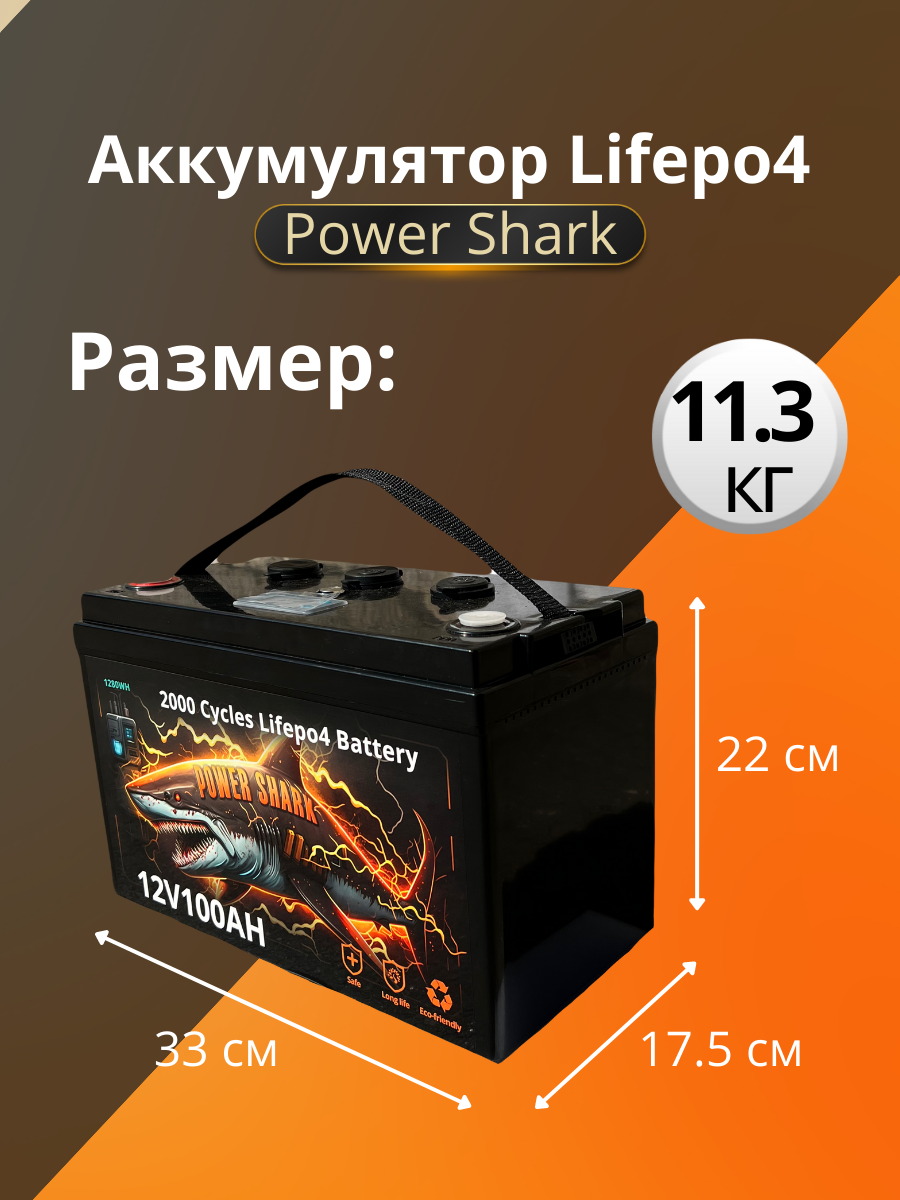 Аккумулятор Lifepo4 Power Shark 12V 100AH имеет напряжение 12 вольт, что позволяет его использовать в широком спектре устройств, включая автомобили, лодки, грузовики, кемпинговое оборудование, солнечные системы, резервное питание и другие условия, где необходим надежный источник энергии.