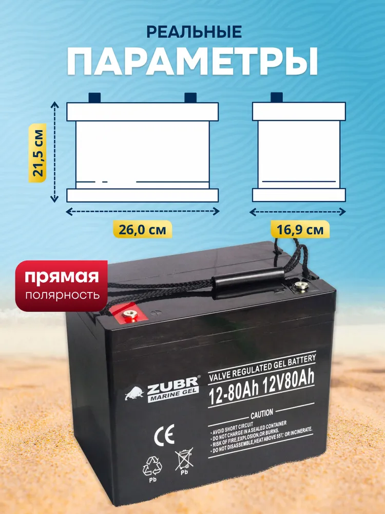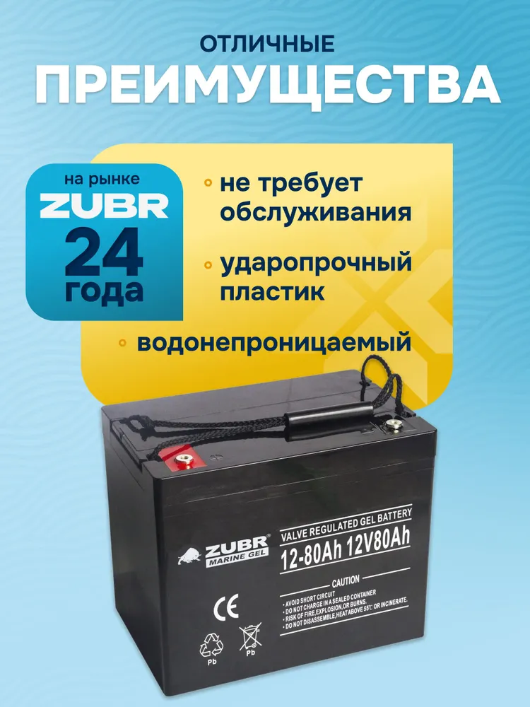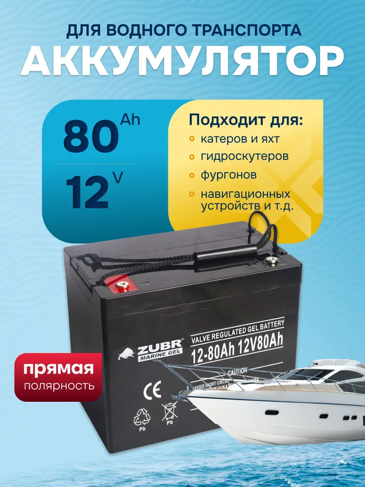 - Аккумулятор ZUBR MARINE GEL 12V 80Ah