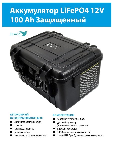 Аккумулятор для лодки BAY LiFePO4 12V 100Ah защищенный