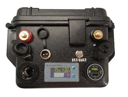 Легкое и компактное устройство для обеспечения питания лодочного электромотора, эхолота для рыбалки и картплоттера, кемпера и автодома, для газового котла, автономных солнечных систем, может выступать в качестве автономного источника питания на природе, а также использоваться и в других областях применения.