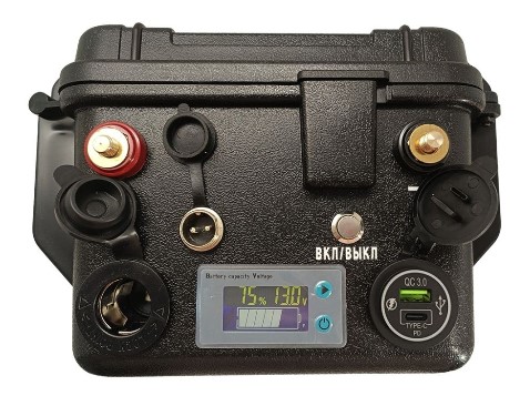 Легкое и компактное устройство для обеспечения питания лодочного электромотора, эхолота для рыбалки и картплоттера, кемпера и автодома, для газового котла, автономных солнечных систем, может выступать в качестве автономного источника питания на природе, а также использоваться и в других областях применения.
