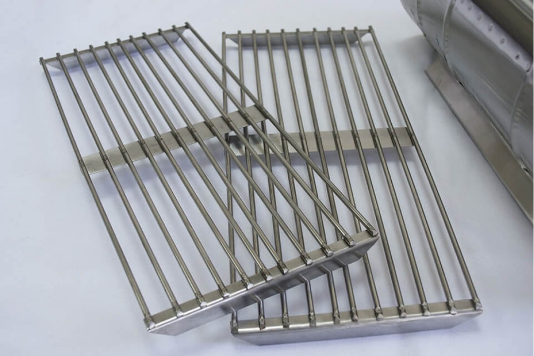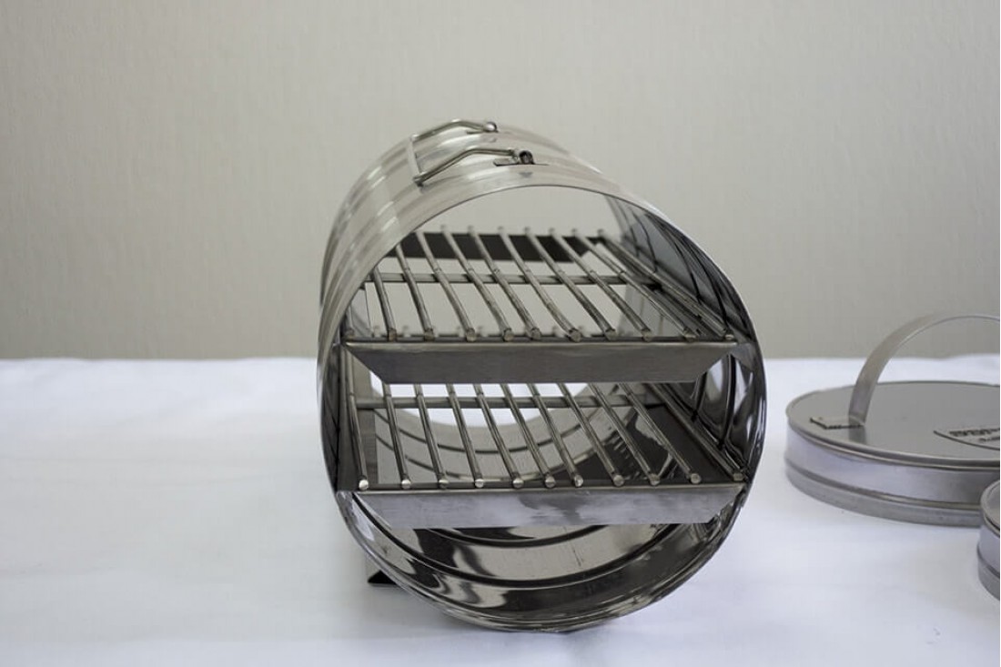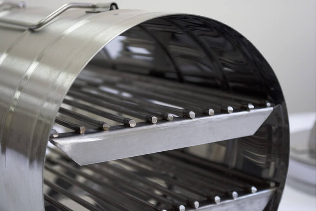 Коптильня оснащена двумя съемными металлическими решетками для размещения продуктов во время копчения.