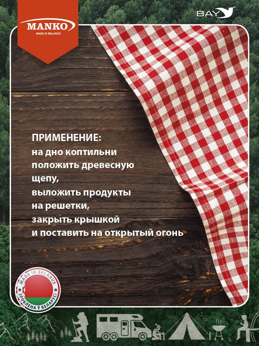✔Для приготовления достаточно загрузить опилки в коптильню, выложить продукты на решетки, закрыть крышкой и поставить на открытый огонь (мангал). Время копчения не менее 20 минут.