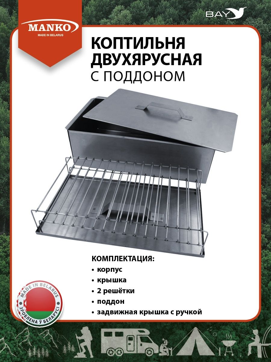 Коптильня Manko двухъярусная с поддоном ― отличный подарок для всех, кто любит вкусно поесть и хочет удивлять и радовать друзей лакомством собственного производства. Переносная коптильня - функциональный прибор, с помощью которого можно готовить рыбу, мясо и птицу, овощи.