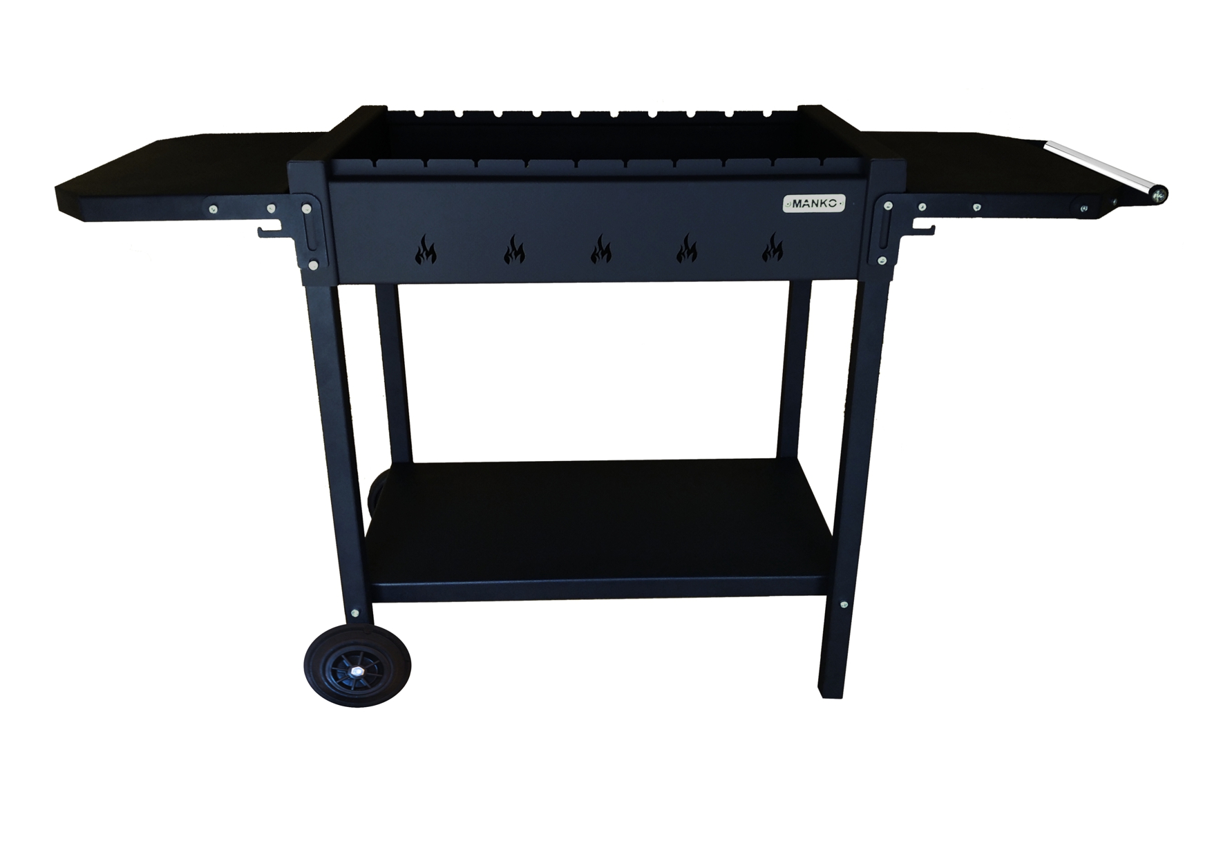 Практичный и функциональный дизайн мангала "Классик-5" включает две складные боковые полки и одну нижнюю полку для удобного хранения продуктов и дров. Эти полки обеспечивают дополнительное рабочее пространство и помогают организовать процесс приготовления пищи. Кроме того, мангал оснащен колесами для удобства перемещения, что делает его идеальным выбором для использования во дворе, на пикнике или на кемпинге.