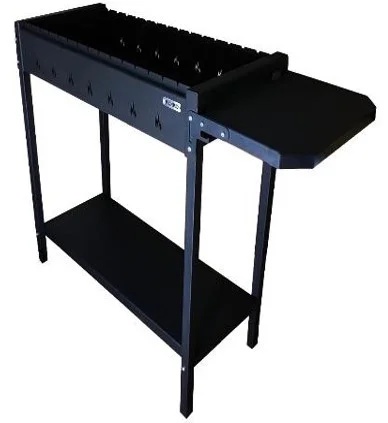 Покрытая термостойкой краской, поверхность мангала выдерживает высокие температуры до 700 градусов по Цельсию, что обеспечивает безопасное и эффективное приготовление пищи. Практичный дизайн мангала включает в себя одну складную боковую и нижнюю полки для удобного хранения продуктов и дров.