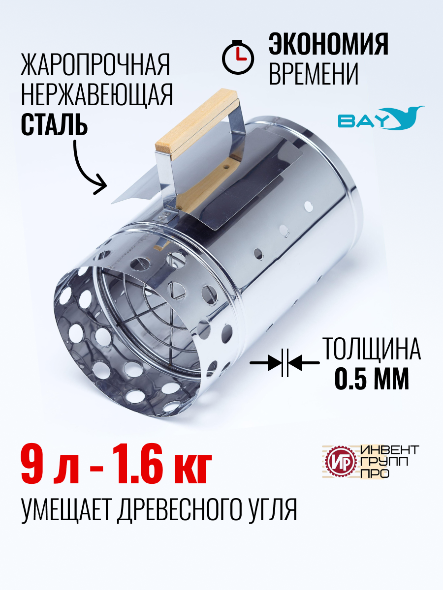 Кружка – стартер применяется для розжига угля без использования жидкости для розжига. С помощью кружки-стартера вы без хлопот получите готовые угли для использования в мангале, гриле, барбекю.