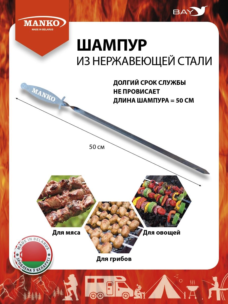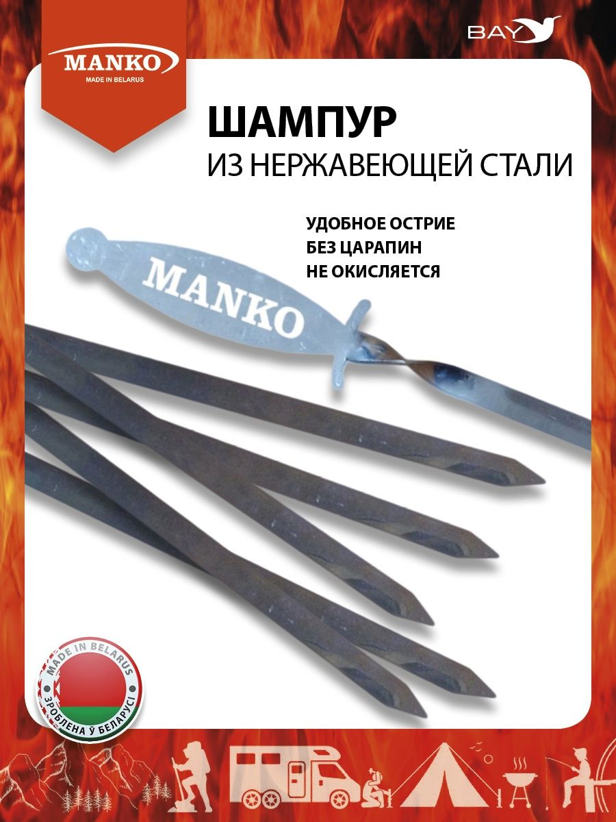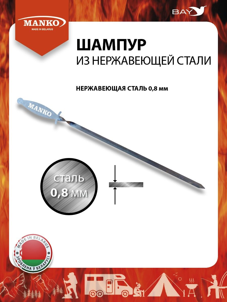 Шампур MANKO из нержавеющей стали 0,8 мм поход рыбалка отдых 1 шт