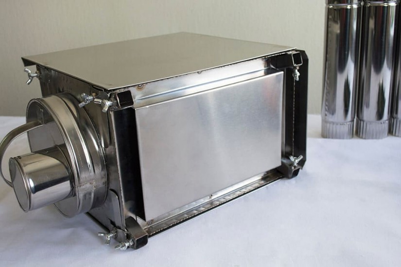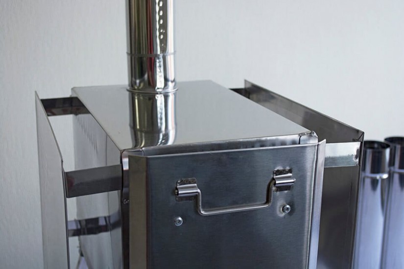 Для производства дровяной мини печи Экономка применяется жаропрочная нержавеющая сталь AISI 430 толщиной 0,5 мм – для короба, 0,4 мм – для труб дымохода.