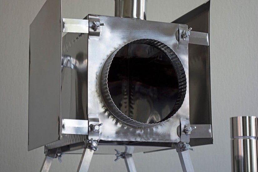 Отражающие экраны играют важную роль в безопасности применения походной мини печи длительного горения. Печь мини, оборудованная нижним и боковыми отражающими экранами, обеспечивает максимальный уровень пожарной безопасности, защищает тент, дно палатки, грунт и личные вещи от оплавления и возгорания. Отражающие экраны обеспечивают конвекционные потоки вдоль корпуса, способствуя быстрому нагреву воздуха.