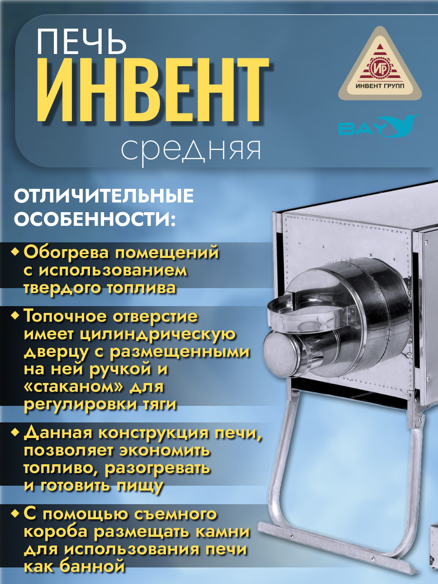 Печь «ИНВЕНТ» выполнена из жаропрочной нержавеющей стали.