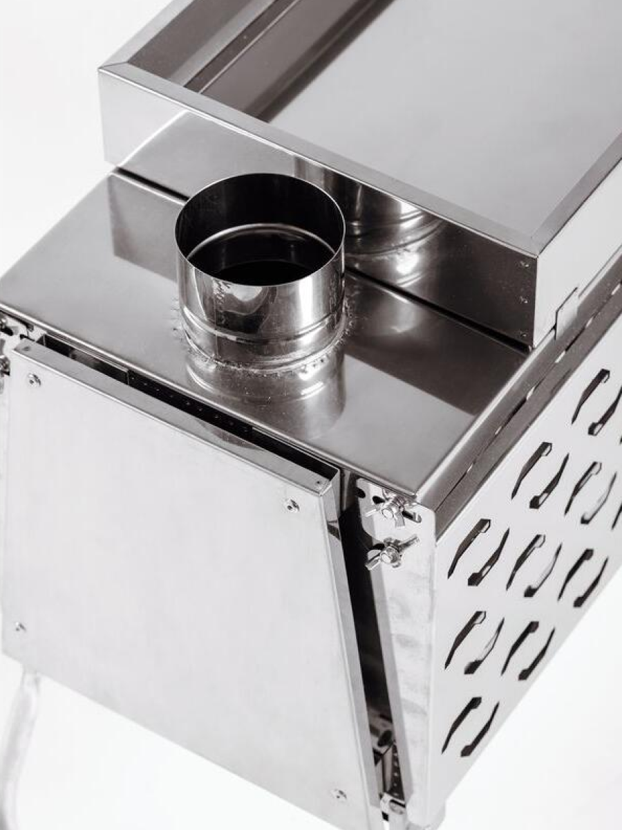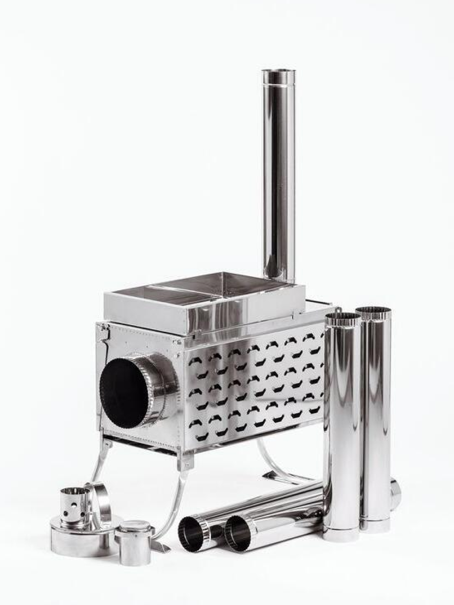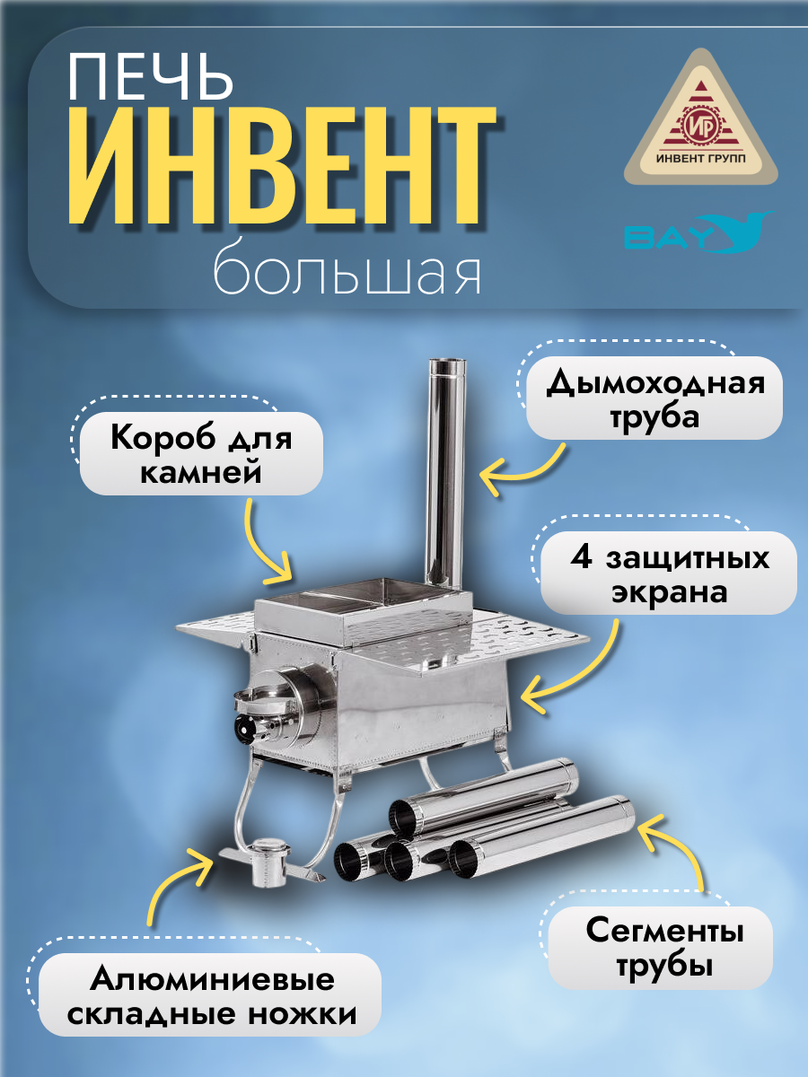 Печь их для обогрева помещений (зимних палаток) с использованием твердого топлива (дрова, топливные брикеты, древесный уголь, хворост и т.п.). Печь состоит из металлического короба с внутренней перегородкой-искрогасителем с оборудованным выходом под дымоходную трубу, имеет четыре защитных экрана, два из которых (боковые) — экраны-трансформеры, съемный короб для закладки камней, складные ножки и дымоходную трубу, состоящие из сегментов. В рабочем состоянии экраны-трансформеры выполняют защитную функцию, а также дают дополнительную поверхность для суши или можно использовать, как полку подставки, как вместе, так и по отдельности. Топочное отверстие имеет круглую дверцу с закрепленными на ней ручкой и «стаканом» для регулировки тяги. Данная конструкция печи позволяет экономить топливо (отрегулирована сила потока тяги), разогревать и готовить пищу с помощью съемного короба. Размещать камни для использования печей как банных.