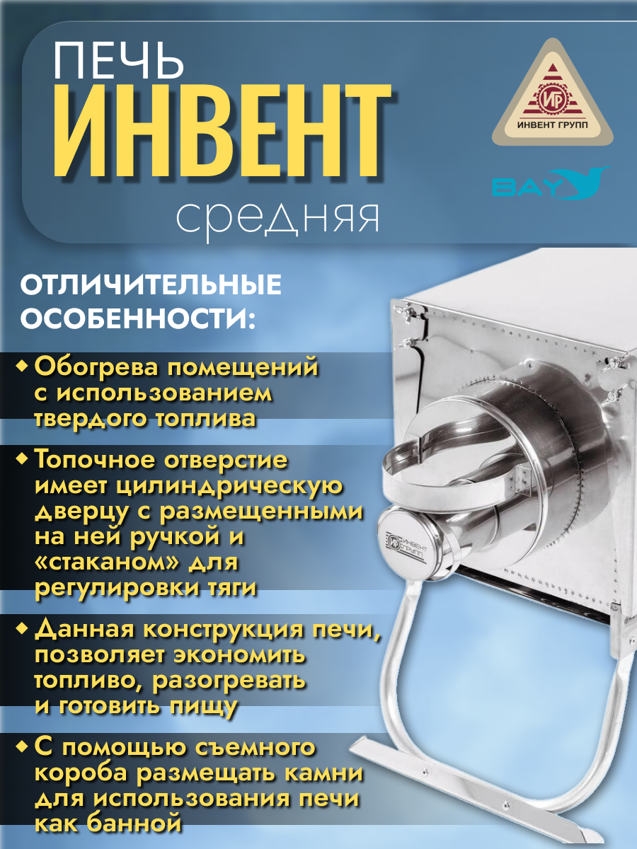 Печь «ИНВЕНТ ПРО» выпускается трех типоразмеров: малая, средняя, большая.