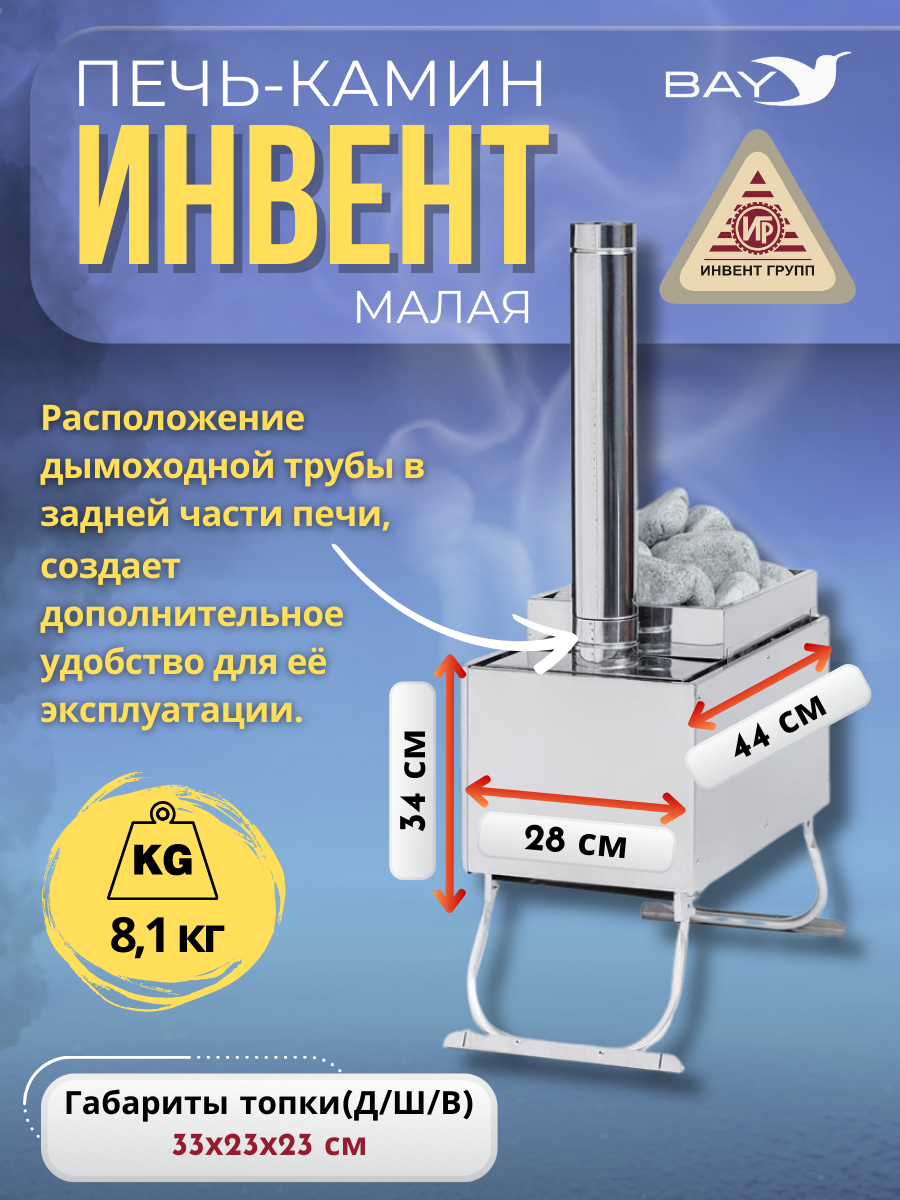 Печь-камин "ИНВЕНТ" малая 440х280х340 (нерж.сталь 0,8 мм) со стационарными экранами + короб для камней