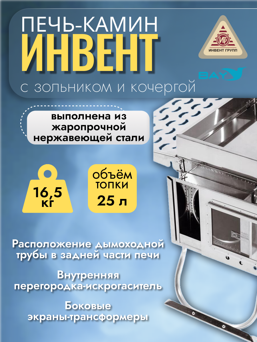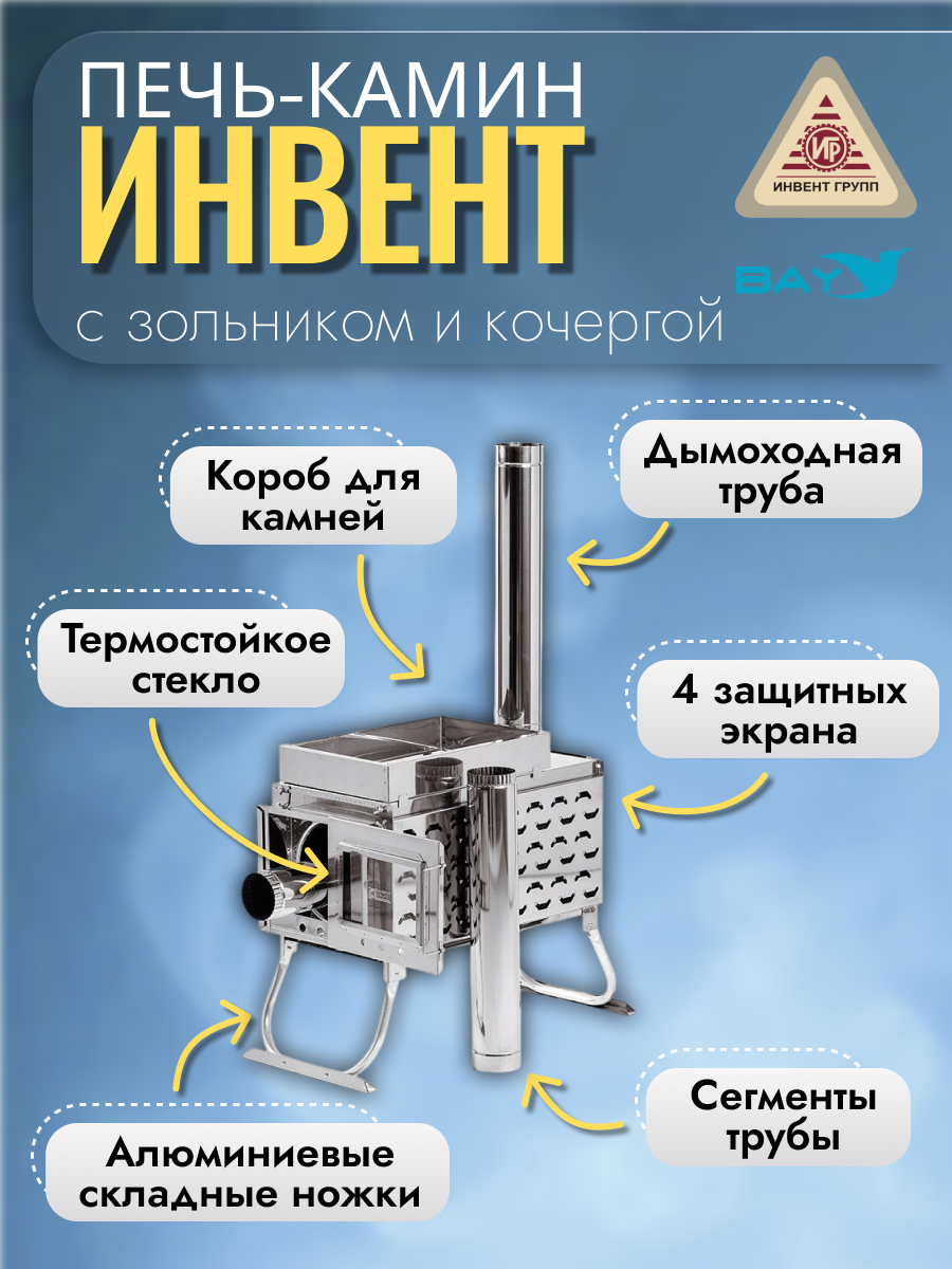 Печь-камин "ИНВЕНТ ПРО" для походной (мобильной) бани.
