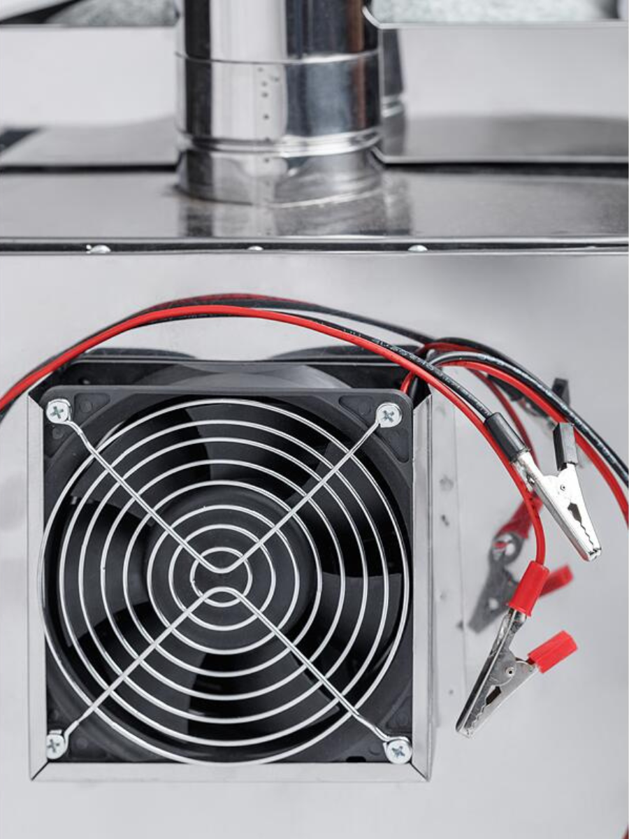 - Обогрев помещения происходит на стадии растопки дров, за счёт работы вентилятора.