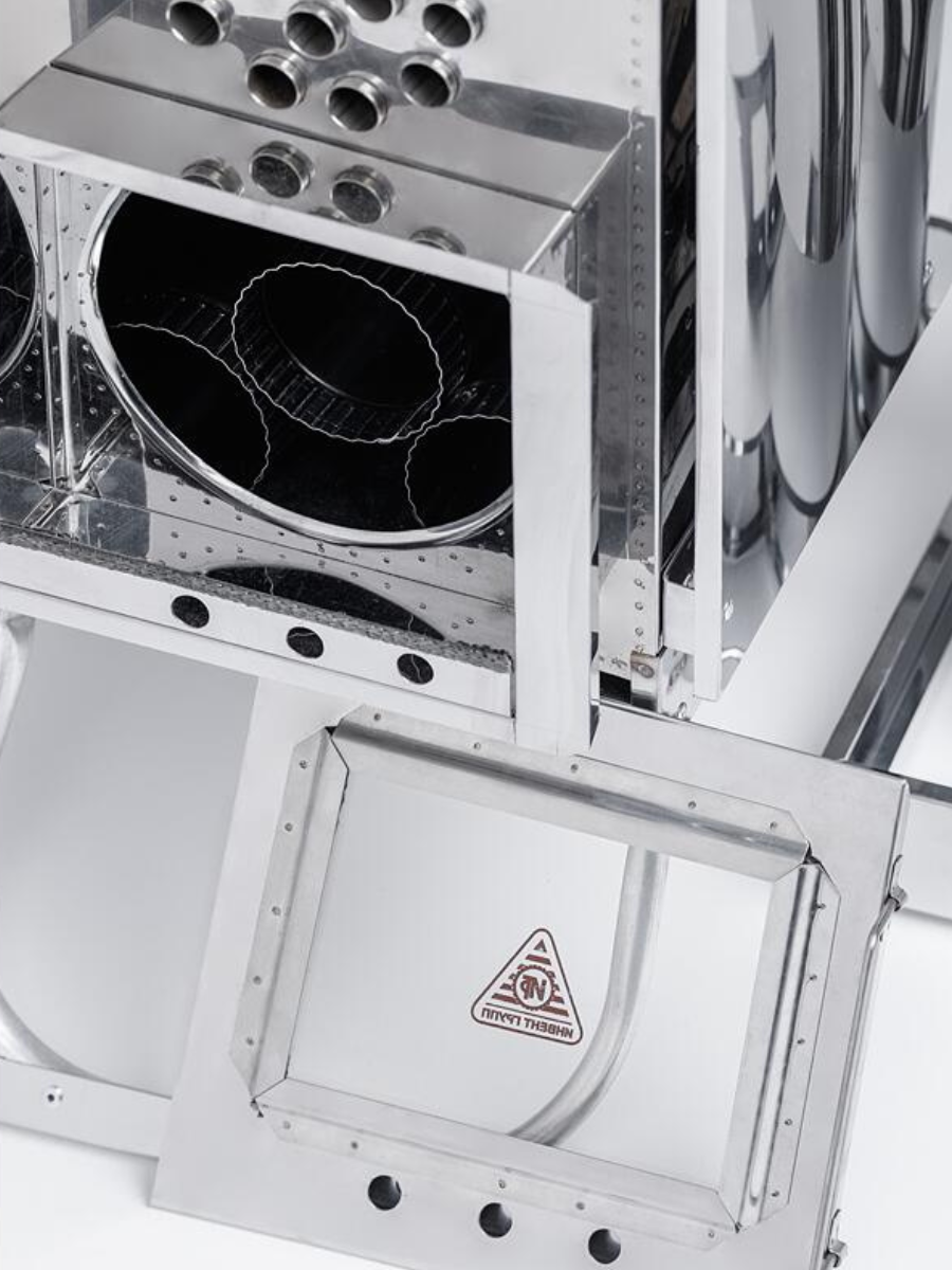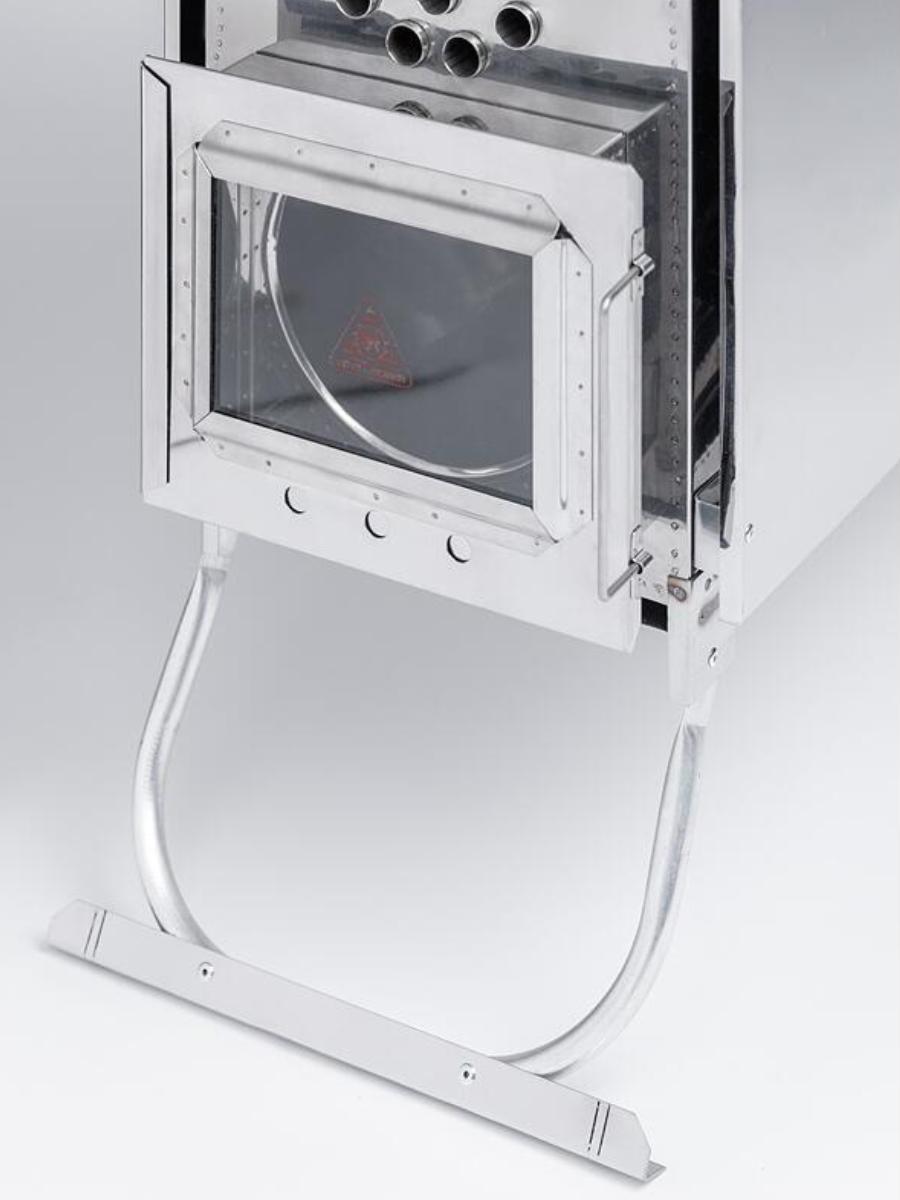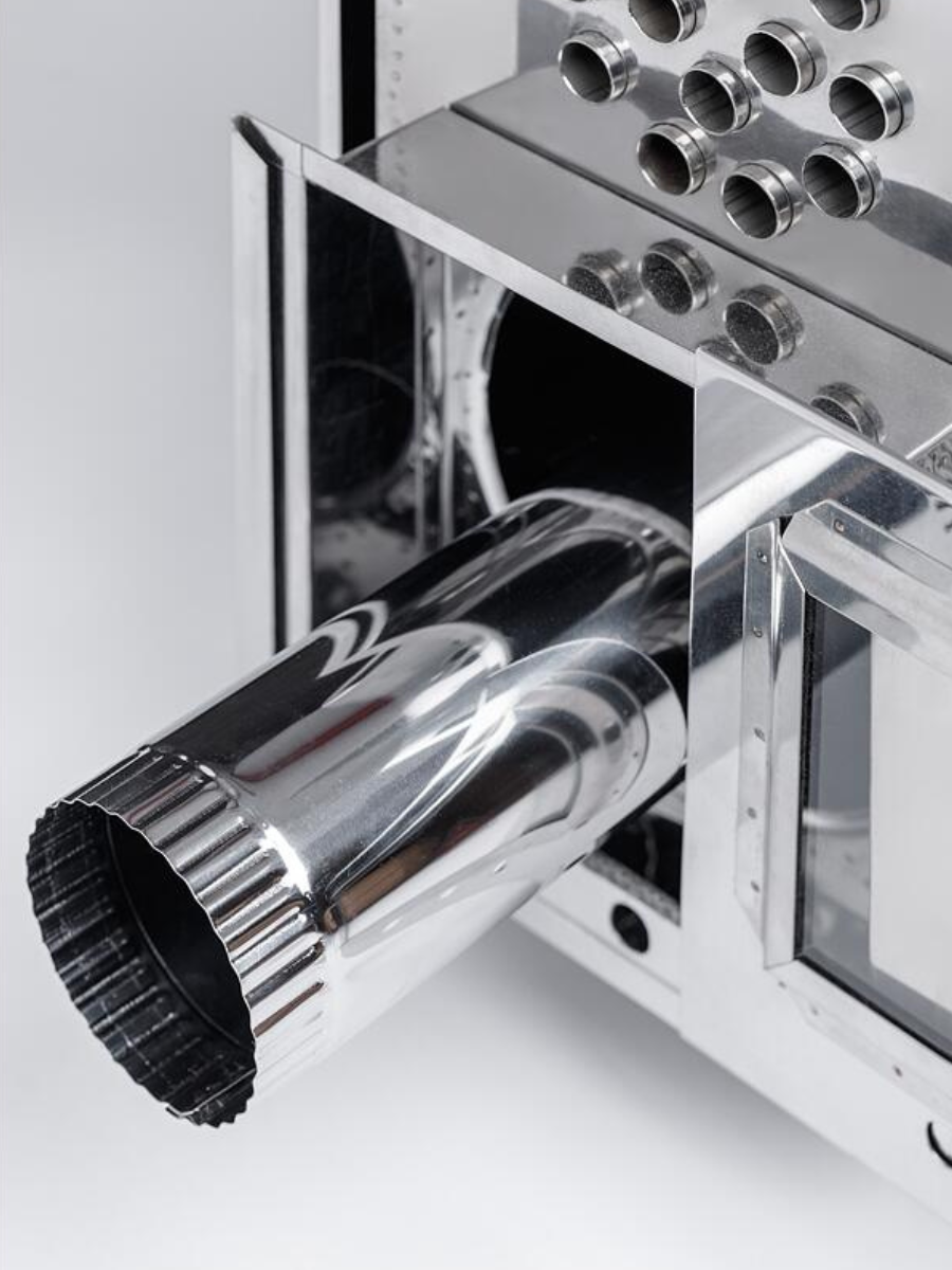 Печь-камин «Инвент» с теплообменником выполнена из жаропрочной нержавеющей стали.