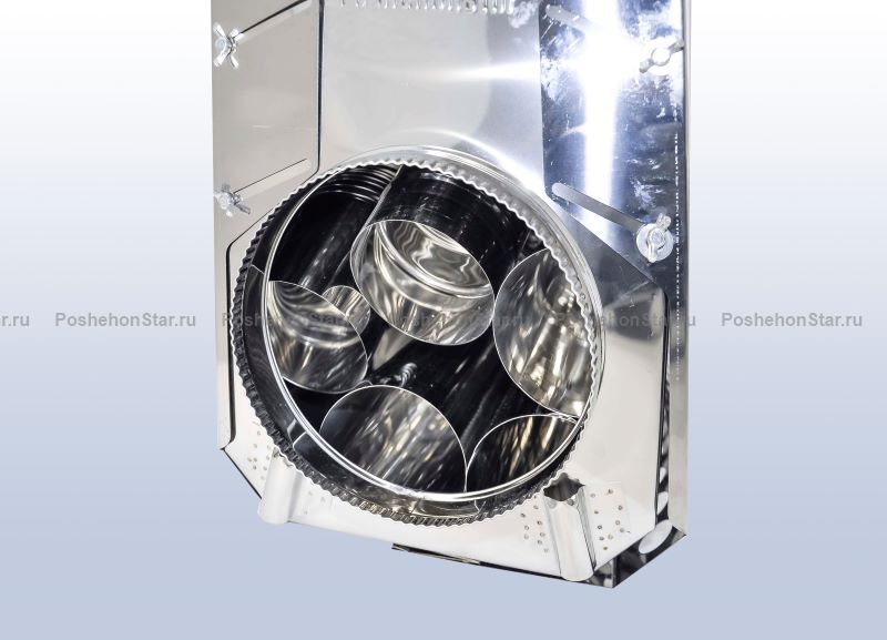 - Экраны закрывают основную часть задней стенки. Снимают большую часть теплового излучения и защищает от случайного прикосновения. Это позволяет устанавливать печку достаточно близко к стенке палатки (рекомендуемо не менее 30см)
